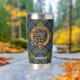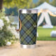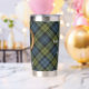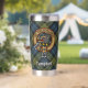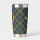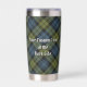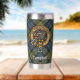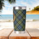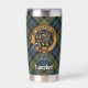 Le badge Campbell crest entouré d'une sangle et boucle sur l'arrière - plan tartan. Texte personnalisé des deux côtés.