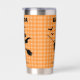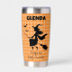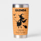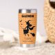 This festive two-sided design features a stylish witch silhouette flying on her broom, surrounded by fluttering bats against a cozy orange plaid background. On both sides of the tumbler, the witch soars across the scene, while proudly displaying “Happy Halloween”in black lettering. Add your custom name to make it uniquely yours or create a fun, thoughtful gift for friends, coworkers, or anyone who loves spooky season. Whether you’re sipping pumpkin spice lattes, hot apple cider, or your morning coffee, this tumbler adds a touch of witchy charm to every sip. All text is editable. Edit from the product page or to change font style or color, use the design tool.