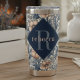 This stylish Monogram William Morris Floral design features a classic peach blush, blue and cream elegant floral pattern with a diamond initial and monogram. This beautiful insulated tumbler keeps drinks hot or cold for hours, making it a perfect, personalized gift for women who love Art Nouveau and appreciate elegant, practical accessories for home or travel. Created by Simply Farmhouse Press.