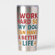 Ce design est destiné à tous les propriétaires de chiens dévoués. Doté de l'expression "Je travaille dur pour que mon chien puisse avoir une vie meilleure" dans un mélange de couleurs vives, cette chemise est une façon amusante et sincère de montrer votre dévotion à votre meilleur ami furieux. L'ajout d'empreintes de pattes subtils en fait le design parfait pour quiconque aime son compagnon canin plus que tout.