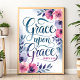 Ein zartes Aquarelldesign mit sanften Blumenakzenten, die den Satz "Grace Upon Grace" umrahmen. Eine zeitlose Erinnerung von Gottes Liebe und Gunst, ideal für jeden Raum