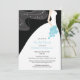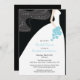 Commencez votre évènement avec notre belle silhouette d'une robe blanche et le voile qui coule sur un arrière - plan noir aux accents bleu turquoise.Invitation douche nuptiale. Customisez simplement notre invitation avec vos informations de mariage et vous êtes tous prêts à partir.