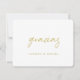 Diese schlicht elegante Dankeschön-Karte bietet 'gracias' in einem entspannten, warmen, modernen Drehbuch in Gold mit Platz für Ihre Vornamen in Gold darunter, und es funktioniert wunderbar mit einer Vielzahl von Anlässen! Das "gracias"-Element des Entwurfs kann nicht geändert werden. Sie können die Farbe, den Schriftart oder die Größe eines beliebigen anderen Textes ändern. Wir haben das gleiche Gold wie die Standardeinstellung für Ihren Text auf der Rückseite gewählt. Wir haben einen Platzhalter-Text auf die Rückseite gelegt, damit Sie ihn durch Ihre Nachricht ersetzen können. Aber fühlen Sie sich dadurch nicht eingeschränkt. Wenn Sie es vorziehen, den Rücken leer zu machen, damit Sie stattdessen eine handschriftliche Notiz auf jeder Karte schreiben können, können Sie das tun. Bitte stellen Sie sicher, dass Sie in jedem Fall unseren Beispieltext löschen! Auf beiden Seiten haben wir keine Standardfarbe für den Hintergrund ausgewählt. Stattdessen ist das Set, einfach das Papier selbst als Grundfarbe zu sein. Sie können dies ändern, indem Sie eine Farbe in den Bearbeitungswerkzeugen auswählen, wenn Sie möchten. Ein minimalistisches Design wie dieses bringt das Papier in einen schärferen Fokus und lädt Sie ein, Ihre eigenen handgeschriebenen Worte auf den Rücken zu schreiben, ob es nun Ihre Unterschriften oder eine Botschaft sind. Wir haben Matte statt Halbschall als Standardpapierwahl gewählt, da es gut geeignet ist, Ihre eigene Nachricht zu schreiben und nicht zu verschmieren.Sie könnten auch erwägen, auf etwas mit einer Textur wie Zazzle's 'Laid' oder 'Felt Weiß' ein Gefühl von Wärme und Tiefe hinzuzufügen. Wir haben abgerundete Kanten gewählt, um sie hier zu zeigen, aber man kann das leicht ändern. Und bitte Karo unsere Hochzeit danke Ihnen Karte Sammlung zu sehen, diese Karte in schwarz, sowie eine ähnliche "gracias" Karte mit einem anderen Skript, und Designs in Englisch, auch.