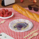 Heller und frischer Blumenlüfter mit Spitzen in Rosa und Pastelltönen, koordinierender Servietten und Dekoration. Einzigartiges Design für Ihre Veranstaltung.