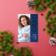 Moderne Grad 2025 Foto Navy Gold Real Foil Ankündigung. Die Eleganz der reellen Folie in Gold für die rotierte Typografie, Grad und das Jahr, mit der Erholung des Textes in Weiß, einschließlich Ihrer Nachricht auf der Rückseite auf einem marineblauen Hintergrund, der in jede Farbe geändert werden kann. Ersetzen Sie die Fotos auf beiden Seiten durch Ihre beiden Favoriten.