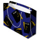 Creative Abschluss Geschenktasche für Ihre Lieblings-Klasse von 25 Grad mit schwarzen und goldenen Kappen auf einem blauen Hintergrund. Zur Personalisierung editieren Sie den Text, um den Namen des Absolventen und sein Senior Class Year hinzuzufügen.