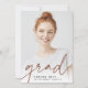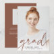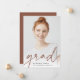 Moderne Abschluss-Ankündigung für Ihre Klasse von 2022 grad verfügt über ein Single vertikal/portrait orientiertes Foto, mit "grad" am unteren Rand in dunklem Terracotta Ton handgeschriebene Skript-Schrift. Der Name und die Schule des Absolventen erscheinen ganz unten. Fügen Sie dem Rücken eine persönliche Ankündigung und ein zusätzliches Foto hinzu.