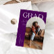 Stilvolle und moderne Abschluss-Ankündigungskarte zum Versenden an Familie und Freunde. Es gibt einen lila Bogenrahmen um Ihr Foto. Es steht oben "GRAD" mit deinem Namen, der in einem lässigen Skript-Schriftart geschrieben ist.