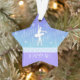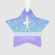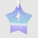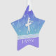 Une silhouette blanche d'une ballerine sur un fond bleu en cet ornement en forme d'étoile de Noël. Le mot "danse" aussi bien que quelques coeurs minuscules décorent l'arrière - plan. Customisez-le, ajoutez votre nom !