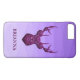 Moderner lila und lavendergeometrischer Hintergrund und lila polygonaler Hirsch. Optionales Monogramm