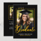 This graduation announcement card features a classic black and gold theme with your graduate's photo and trendy script typography. The back of the card features your grad's photo with a text area for adding their future college intent or goals. Perfect for high school or college graduates wanting a classic "class of" themed graduation announcement.