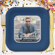 Fügen Sie Ihr Lieblings-Foto zu diesen Abschluss quadratisch blauen Party-Papier-Tellern mit Ihrem Namen, Klassenjahr und das Wort graduieren in chic Schriften auf einem blauen Hintergrund. Weitere Designs und Farben in unserer Kollektion.