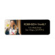 Personalisierte Adressliste-Design-Vorlage mit einem beliebten Foto Ihres Absolventen mit modernem Goldskripttypografie-Rücksendeadresse-Text auf klassischem schwarzem Hintergrund. Foto und Text lassen sich leicht anpassen. Herzlichen Glückwunsch!