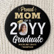 Zeigen Sie Ihre Freude für den Absolvent mit einem stilvollen Foto "Proud Mama" runden Abschluss-Button. Das Bild und der Text auf dieser Vorlage sind einfach zu personalisieren, und alle Texte, Farben und Schriftart können mit dem Zazzle Design Tool geändert werden. (IMAGE PLACEMENT TIP: Eine einfache Möglichkeit, ein Foto genau so zu positionieren, wie Sie es gewollt haben, besteht darin, es einzuschneiden, bevor Sie es auf die Zazzle-Website hochladen.) Das Schwarz-, Weiß- und Golddesign umfasst das Foto, den Namen und das Klassenzjahr des Absolventen. Freuen Sie sich auch auf elegante moderne Typografie und stilvolle Kalligrafien. Bitte beachten Sie, dass Gold farblich gedruckt ist, nicht metallische Folie. Dieses Zubehör fügt eine einzigartige Touch zu einer Beginnfeier oder Graduiertenoutfit hinzu. Herzlichen Glückwunsch an den Absolventen!