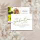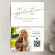 Dieses Design umfasst ein Studierendenstudium Party Einladungskarte, mit einer Graduiertenkappenschablone, eine klassische Graduiertenmütze, ideal für Unis in der Oberstufe, mit einer QR-Codepage online, einem minimalistischen, modernen Gold, mit Foto Senior-Foto, einem Abschluss-Grad-Party Details, eine Graduierungspartei Beilage Karte, mit mehr Informationen auf der Website