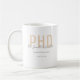 Eine Doktortitel-Tasse, die den Namen des Absolventen, das Studiengebiet und das Datum des Abschlusses enthält. Die Tasse enthält den Namen in einem Schriftart mit Schriftzeichen und einem neutralen braunen und bräunlichen Design. Es ist großartig wie ein Sake oder ein Gastgeschenk. Fügen Sie einfach die Informationen des Absolventen hinzu, fügen Sie diese Tasse in Ihren Warenkorb, und herzlichen Glückwunsch zu diesem wichtigen Meilenstein! Graduate Keepake Neutrals Brawn Name Degree PhD Holidayday Design | ©Melissa Patton - Designer