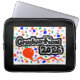 A Black Color Laptop Sleeve, With a Drawing/Design, of the Word = Graduation 2026= in Black and White color, With a Colorful Confetti, and a Red Balloon, = (Drawing/Design by P.J.M.). =On it, With A White/black