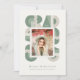 Retro-style yet modern graduation announcement photo card featuring bold geometric “GRAD” lettering and a colorful border framing the graduate’s photo. Vintage-inspired green and sage tones give this design a stylish retro feel, perfect for celebrating a milestone with timeless flair.