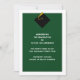 Classic graduation announcements for the grad featuring elegant black cap and gold tassel on green background.