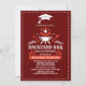Linda invitación a la fiesta "Backyard BBQ" incluye un motivo de cierre de graduación, un elegante texto personalizado con fuentes rústicas y modernas, Se puede personalizar el fondo Rojo oscuro y el trenzado de manteles de gingham en la parte posterior de la tarjeta. Perfecto para una fiesta de graduación al aire libre.