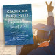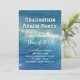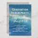 Invitation de la fête de remise de diplômes de plage avec arrière - plan des vagues de l'océan. Customisez le texte à trois endroits en blanc sur bleu. Célébrez avec les membres de la classe et profitez de la mer magnifique. Choisissez les invitations imprimées ou l'option de téléchargement instantané.