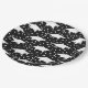 "Planung einer Abschlussfeier? Erleben Sie die Feier mit diesen eleganten Tellern aus Papier mit weißer Graduierenkappe und Konfetti auf schwarzem Hintergrund. Ideal, um Ihrem Party Flair und Geschirr hinzuzufügen!"