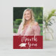 Diplôme personnalisé rouge et blanc remerciement carte photo personnalisé avec le nom du diplômé et l'année de classe sur le front ainsi qu'un titre de MERCI dans la typographie de script de calligraphie chic. Le verso offre la possibilité de pré-imprimer votre message de remerciement ou d'opter pour la suppression de l'exemple de texte pour laisser la zone vide pour les notes d'appréciation manuscrites. ASSISTANCE : Pour obtenir de l'aide sur la modification ou la personnalisation de la conception, le changement de couleur, le transfert de la conception vers un autre produit ou si vous souhaitez coordonner des éléments, contactez le concepteur AVANT DE COMMANDER via l'onglet MESSAGE Conversation Zazzle ou envoyez un courriel à makeitaboutyoustore@gmail.com.