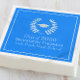 This design features class of your graduating year with a modern graduation design, a simple grad party invite with an elegant celebration, high school college commencement, with mortarboard, azure blue senior typography, trendy stylish script calligraphy, and unique minimalist paper napkin, with hat cap laurel leaves.