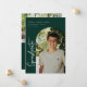 Faire-part/invitation de graduation de photo avec cadre d'arc, scénarisé moderne "diplômé". Caractéristiques, typographie blanche sur les arrière - plans verts de forêt.
