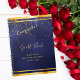 Un Graduation Party officieux Livre d'invité pour lui, garçon, gars en bleu foncé, arrière - plan bleu marine. La couleur bleue est inégale. Avec un cadre en faux or et des confettis dorés saupoudrés, des lettres de couleur dorée. Le titre Guest Book est écrit avec un script de style moderne écrit à la main. Modèle pour un nom et une date.