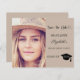On front: Add your own vertical size photo of the graduate. A chic mocha, beige colored background, black text. Templates for a name and date. The name and the text: Save the Date are written with a modern hand lettered style script. With a cap, tassel topper.