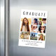 Élégant faire-part de graduation magnétique pour célébrer le diplômé avec "GRADUATE" en haut dans la grande typographie, un collage de sept photos et son nom, année de classe et l'école dans la typographie moderne.