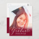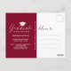 Annoncez votre remise de diplômes 2021 à votre famille et à vos amis avec cette carte postale moderne personnalisée de grad et d'invitation à la fête. Le modèle design présente votre photo avec une couverture rouge et un script blanc à la main moderne qui dit "Graduate" et votre nom, et classe/année ci-dessous. Le verso de la carte contient plus de détails de votre graduation avec l'invitation de la fête pour vous de customiser accentué par un bouchon blanc de graduation sur un arrière - plan de marron. Félicitations pour votre diplôme ! Conçu par l'artiste Susan Coffey.