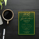 Eine moderne und stilvolle Einladung für eine 20xx Abschlussfeier. Für ihn und sie. Ein klassischer grüner Hintergrund und goldener Konfetti Regen. Mit einem Imitat Goldrahmen. Vorlage für Name und Party. Der Text-Abschluss und der Name werden mit einem modernen Stilskript geschrieben. Goldene Buchstaben. Zurück: grüne Hintergrundfarbe, Konfetti