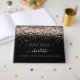 Ein Gästebuch für eine feminine und glamouröse Graduiertenparty. Ein schwarzer Hintergrund mit Rose Gold Konfetti. Der Text: Der Name wird mit einem modernen, handgeschriebenen Stilskript mit Swashes geschrieben. Mit dem Text: Graduate - Klasse von 20XX (oder jedes Jahr). Fügen Sie Ihren Text auf den Rücken. Um die Swashes behalten, löschen Sie nur den Beispielnamen, verlass die Leerzeichen oder Emoji's vor und nach dem Namen.