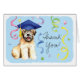 Envoyez des remerciements pour votre cadeau de remise de diplômes avec ce design qui comprend un mignon diplômé de l'école Terrier routé et douillette portant un mortier au milieu d'une flûte de confettis.