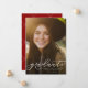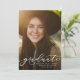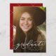 Ein spielerischer, aber einfacher Script-Absolvent sitzt am unteren Ende eines vertikalen Fotos. Der benutzerdefinierte Text enthält Platz für den Namen des Absolventen und auch die Schule und das Jahr Details. Der klassische rote Backer weist ein einfaches Rastermuster auf, und die Farbe kann durch Klicken auf "Weiter anpassen" geändert werden. Eine tolle Möglichkeit, die Leistung Ihres Absolventen an Freunde und Familie anzukündigen!