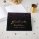 Klasse von 20xx, oder jedes Jahr. Für einen modernen und trendigen Abschluss. Ein schicker schwarzer Hintergrund mit rosa und lila Konfetti. Der Text: Graduate ist mit einem handgeschriebenen Schrift geschrieben. Vorlage für einen Namen und ein Jahr. Fügen Sie Ihren eigenen Text auf den Rücken.