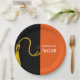 Creative Abschluss Glückwunschs Party Teller mit klassischen schwarz-goldenen Kappe auf einem orangefarbenen Hintergrund. So personalisieren Sie Text bearbeiten, um den Namen von grad hinzuzufügen.