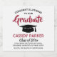 Ajoutez une touche personnalisée aux décorations de la fête de fin d'études supérieures ou secondaires avec ces élégants étiquettes de bouteille de vin mousseux rouge, blanc et noir. Design comprend un arrière - plan blanc, un casquette de tableau de mortier noir, une typographie moderne élégante, une calligraphie manuscrite de style, et un message personnalisable lisant "Félicitations à notre diplômé". Le texte en bas comprend l'année de classe, le nom de l'école et les lignes facultatives pour le diplôme, le type de boisson ou d'autres informations. Tout le texte est simple à customiser. Ces étiquettes font une idée élégante de la fête de remise des diplômes et un ajout élégant à la célébration de la journée spéciale du diplômé. Santé!