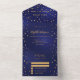 Ein marineblau mit goldenen Sternen dekorierter Hintergrund. Die blaue Farbe ist ungleichmäßig. Personalisieren Sie das Jahr, den Schulnamen, Ihren Namen und die Details.