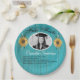 Rustikale Graduierungsparty Fun Fakten über die Graduate, Sonnenblumen Aquamarin Blue Wood Design Papier Teller Teil der Barn Wood und Sonnenblumen Graduation Party Suite.