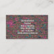 Laissez des impressions durables à vos clients lorsque vous leur donnez ces cartes de visite muraux en briques de graffiti. Ces cartes de visite de taille standard sont parfaits pour tous les métiers ou métiers : graphiste, avocat, comptable, avocat, architecte d'intérieur, styliste, agent immobilier, baby-sitter, consultant, formateur personnel, tuteur, cosmétologue, directeur des ventes ou toute autre activité professionnelle. Ces cartes de visite sont modernes, tendance, minimalistes, simples, simplistes et élégants. Customisez facilement avec vos coordonnées personnelles. Changez les couleurs de police ou les styles de police en cliquant sur le bouton "customiser".