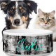 Eine Schüssel mit grauem und schwarzem Grunge-Muster und Ihr Name in Aquablau.