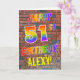 An der Vorderseite dieser auffälligen, lebendigen und lustigen Geburtstagskarte steht die Nachricht "HAPPY 51ST BIRTHDAY" mit Buchstaben mit einem farbigen Regenbogenmuster und einem editierbaren, gelben Namen auf einem Backsteinwandmuster. Der Stil wird durch Graffiti oder Straßenkunst inspiriert, die an der Wand gezeichnet werden. Im Inneren befindet sich eine personalisierte Geburtstagsgrüßbotschaft. Eine glückliche, lustige, bearbeitbare Geburtstagskarte wie diese könnte jemandem geschenkt werden, der seinen 51. Geburtstag feiert. [~Z0000357]
