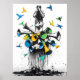 Dieses mächtige Graffiti-Kunstwerk besticht durch einen Mann, der sein Gesicht bedeckt, umgeben von einer Explosion von Megaphonen und lebendigen Vögeln, die wegfliegen, und symbolisiert das Chaos der Medien und den Wunsch nach Freiheit. Die kontrastierenden Farben Blau, Gelb und Grün fügen diesem urbanen Protestwerk Tiefe und Energie hinzu, was eine kühne Aussage über die Auswirkungen moderner Kommunikation und persönlicher Ausdrucksformen macht. Ideal für diejenigen, die Straßenkunst mit einer tieferen Botschaft schätzen, bringt dieses Design mächtige Symbolik und lebendige Visuals in jeden Raum.