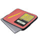 Dieses außergewöhnliche und eigenartige Laptop Case verfügt über einen Taschenrechner mit gelben Tasten und roten Buchstaben sowie einen gelben Stift. Der Hintergrund und der Namensschild-Text können in Anzug mit Ihren eigenen Anforderungen geändert werden. Entwürfe von KPW_Graphics.