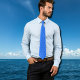Dieses Seepferd hat ein zweifarbiges Mikromuster in zwei Blautönen. Auf beiden Seiten bedruckt, ist es ein stilvolles Accessoire für Meeresliebhaber, das formale oder lässige Outfits um eine subtile Touch ergänzt.