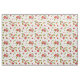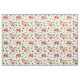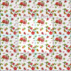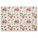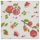 Die Stoffe sind mit roten Granatapfeln, Blume und grünen Blätter auf weißem Hintergrund bemalt.