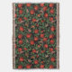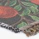 Granatäpfel mit üppigen Blätter und reichhaltigen roten Früchten erstrecken sich über einen schwarzen Hintergrund. Eine sekundäre Ebene verblasst subtil, wodurch Tiefe hinzugefügt wird. Traditionell auf Papier mit Markern gemalt, werden die Elemente gescannt und in Fotoshop zu einem Muster zusammengesetzt.
